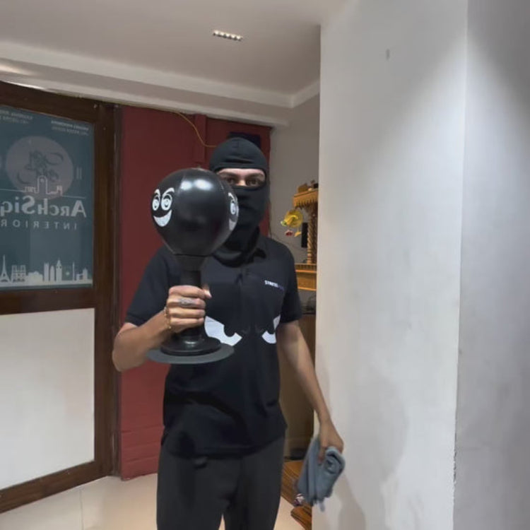 Hos BOKSEVEN handler det ikke om hård træning – men om at finde ro i en travl hverdag. StressFri Bolden er skabt til at hjælpe dig med at slippe spændinger, reducere uro og genvinde dit fokus på en sjov og enkel måde. Perfekt til skrivebordet, hjemmekontoret eller som et lille pusterum i løbet af dagen.